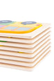 Wszystkie elementy są w 100% wycięte z naturalnego drewna, szlifowane na gładko i barwione przyjazną dla środowiska farbą na bazie wody. Nietoksyczna, bez ftalanów i metali ciężkich, bezołowiowa.